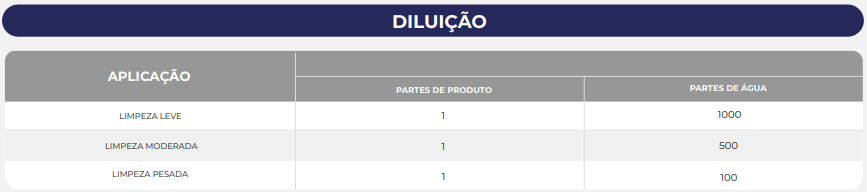 Suponhamos que você esteja com um limpador como o Prax Limpador para Pisos em mãos, queira remover uma sujidade em um determinado piso e se depare com a seguinte tabela no rótulo:
