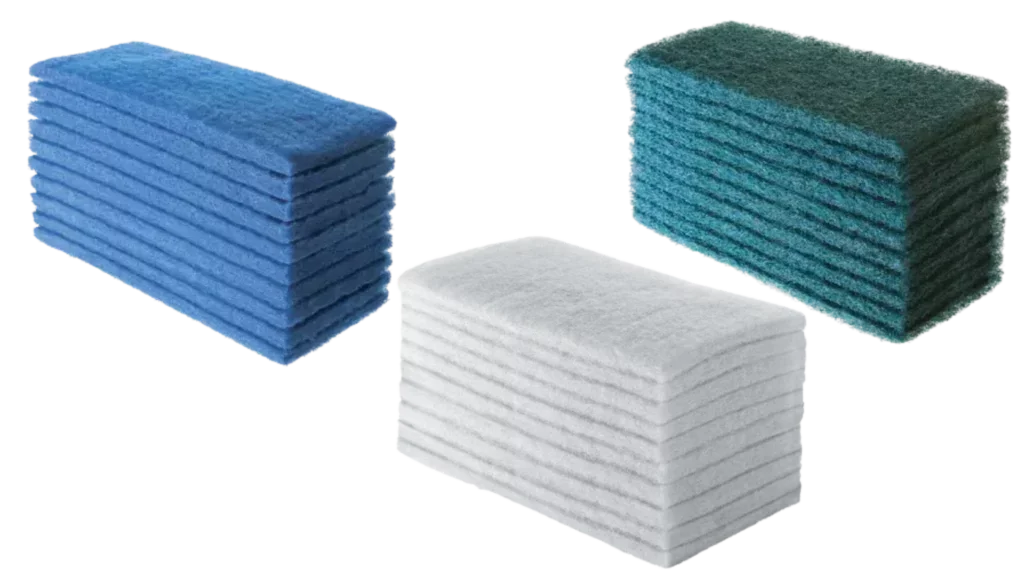 Além disso, o uso de fibras para limpeza. Há diversas opções no mercado, entre fibras para limpeza mais leve (menos abrasivas) ou limpeza mais pesada (mais abrasivas). A escolha da fibra mais adequada depende do objetivo e do resultado de limpeza pretendido.